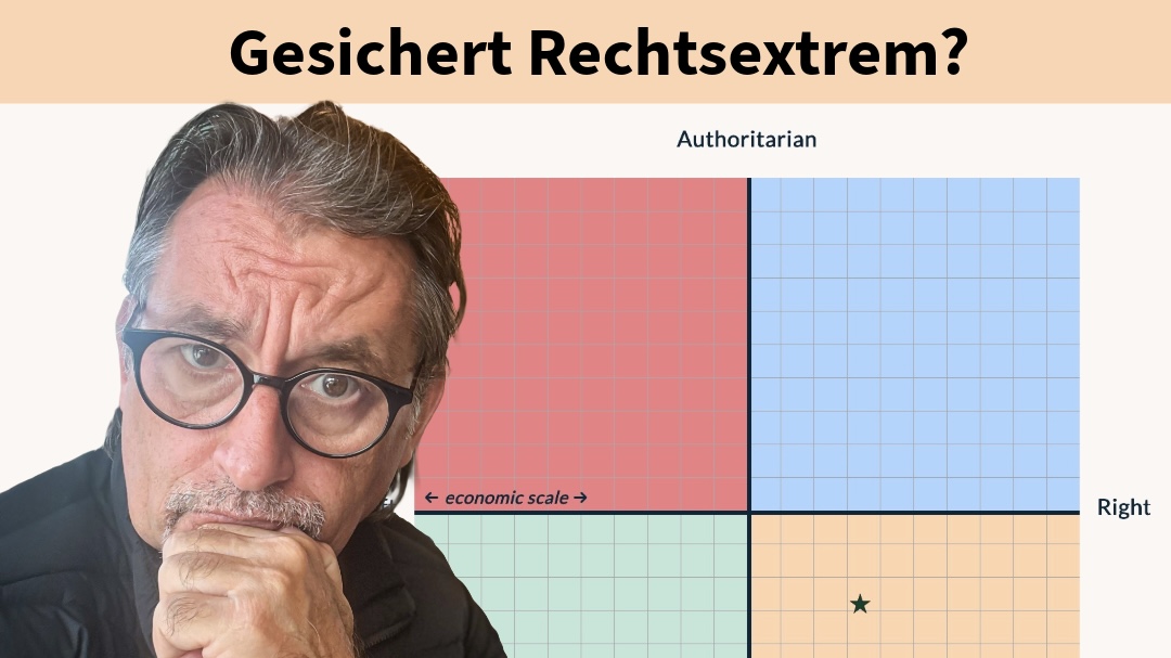 Warum mich meine politische Position heute zum „Rechtsradikalen“ macht – obwohl sie es nicht ist Ich habe heute einen politischen Psychotest gemacht – und dabei nicht schlecht gestaunt, dass mein Ergebnis ziemlich nah an der absoluten Mitte der vier Quadranten lag! Völlig unspektakulär, ich hätte mich selbst als systemkritischer und anarchistischer verortet. Denn viele der … Weiterlesen …